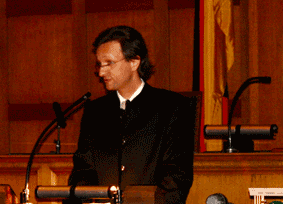 After listening to all the kind speeches tonight I understand why President Kennedy would want to say from the balcony of this building, “I am a Berliner.” You make visitors feel honored and welcome. I thank Professor Huffner, Dr. Lehmann-Brauns, Minister Trittin, and Mr. Geier for their kind words.