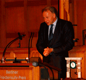 I thank Jens Lorenz for inspiration of the prize and for the exquisite clock that I will put in a place of honor in my home. I thank the UNESCO committee members for their contributions to an important United Nations agency. And I especially appreciate that so many old friends, people I have known and worked with over decades in Germany, were willing to face bad weather and my boring speech in order to come here tonight.