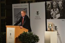 "... Heute werden hier zwei Aktivisten der Aufarbeitung mit einem originellen, wie auch passendem Preis ausgezeichnet, mit der Friedensuhr. Ich muss bei einem so starken Symbol aufpassen, dass ich mich nicht im Walde aller möglichen Metaphern verlaufe. Nur so viel: Die Friedensuhr und die Mauer vertrugen sich nicht. Die Friedensuhr begann mit dem Mauerfall zu schlagen. ..."