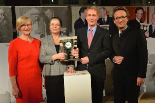 „… ich nehme mit Freude und Dankbarkeit die Friedensuhr entgegen. Diese Ehrung bestärkt mich darin, die Erinnerung an die Glücksmomente im Herbst 1989 zu bewahren und darauf zu vertrauen, dass es für die Verteidigung der Menschenrechte weiterhin viele Verbündete geben wird. ..."
